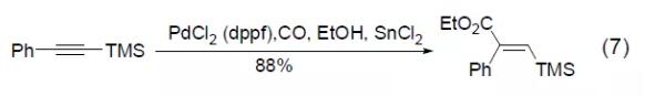 PdCl2 (dppf) can also be used in the hydroesterification reaction of trimethylsilyl alkyne to obtain conjugated vinyl silicon compounds (Formula 7) [7].