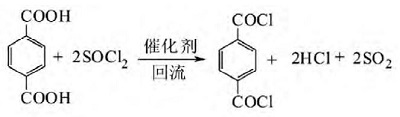 David et al. used terephthalic acid to pass phosgene in the presence of the catalyst DMF and the solvent chlorobenzene, and reacted at 90~100°C to generate terephthaloyl chloride. The melting point of the product is 80.4°C, and the yield is 84.0%. The reaction process is as follows:
