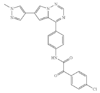 CN201680052913.5 reported that (4-chlorophenyl)glyoxylic acid was used to synthesize the above compound 2-(4-chlorophenyl)-2-hydroxy-N-(4-(6-(1-methyl) -1H-Pyrazol-4-yl)pyrrolo[1,2-f][1,2,4]triazin-4-yl)phenyl)acetamide, used to treat diseases such as mastocytosis, GIST and AML disease compounds. Such compounds can be used to treat human or non-human diseases related to abnormal KIT activity. Activating mutations in KIT can be found in a variety of indications, including systemic mastocytosis, GIST (gastrointestinal stromal tumor), AML (acute myeloid leukemia), melanoma, seminoma, intracranial germ cell tumors and mediastinal B-cell lymphoma.