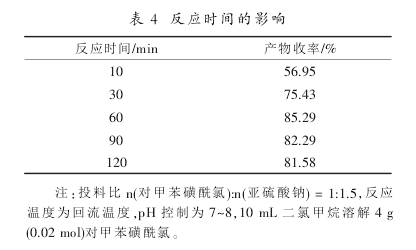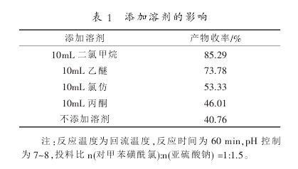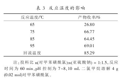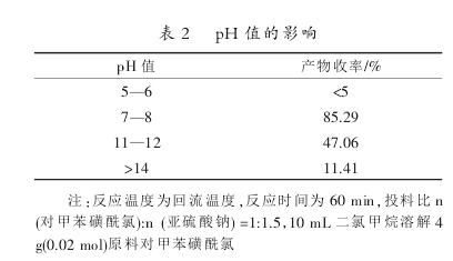 If the pH value of the sodium sulfite reaction solution is too low, it will acidify and release sulfur dioxide. If the pH value is too high, it will cause the hydrolysis of p-toluenesulfonphthalide chloride, so the appropriate pH value has a great influence on the reaction. The specific investigation results of pH are as follows: