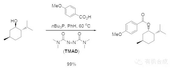 Tsunoda et al. found that for alcohols with greater steric hindrance, the system of TMAD (N, N, N’, N’-tetramethyl-azodicarboxamide) and tributylphosphine works better.