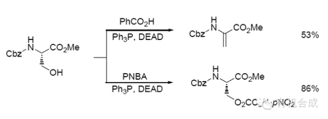 Using p-nitrobenzoic acid (PNBA) as a nucleophile is more effective in flipping alcohols with greater steric hindrance. p-nitrobenzoic acid (PNBA) can also effectively inhibit side reactions: the elimination of alcohols. . Therefore, p-nitrobenzoic acid (PNBA) is usually used as the nucleophile in the Mitsunobu reaction.