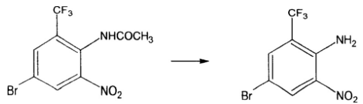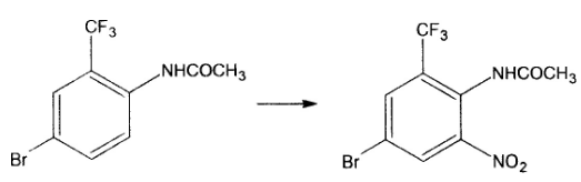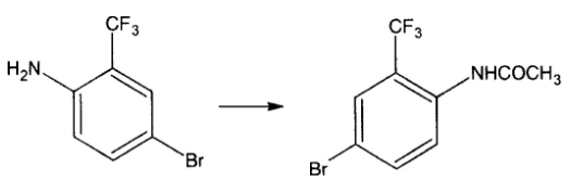 For the acetylation described in 1), put 15 grams of acetic acid into a dry bottle, add 33.6 grams of acetic anhydride under stirring, and add dropwise 4-bromo-2-trifluorotoluidine or 3 – 50 grams of bromo-6-aminotrifluorotoluene, after dripping, raise the temperature to 60 degrees, and keep it warm until the raw material is gone (liquid phase). If the reaction is slow, heat it to reflux, keep it warm until the raw material disappears, pour it into ice water, separate the solid, and pump it out Strain, wash and dry. The yield is 98% and the content is 99.6%.
