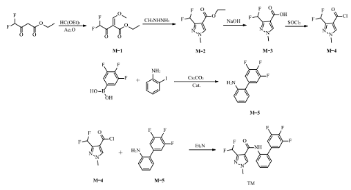 [3] Qin Enhao, Zhao Lili. Market research report on triflufenac and succinate dehydrogenase inhibitor fungicides (2) [J]. Agrichemical Market News, 2017 (1): 48 -51.