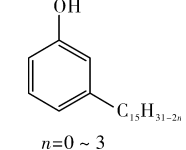 Cardanol is made from natural cashew nut shell liquid and refined through advanced technology. It is a green and environmentally friendly industrial raw material. Because of its low price, abundant sources, excellent performance, and reproducibility, it has become a research hotspot in recent years and has been widely used in the fields of coatings, adhesives, laminated resins, and anti-friction materials. The structural formula of cardanol is as follows. It has the characteristics of both aromatic compounds and aliphatic compounds. At the same time, the phenolic hydroxyl group on the benzene ring gives it the properties of phenolic compounds.