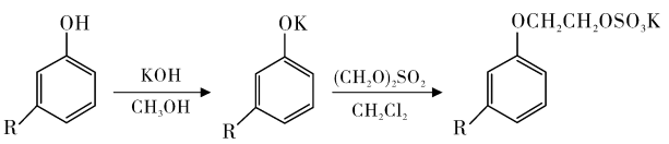Bruce et al. used cardanol as raw material, methanol as solvent, and reacted with vinyl sulfate to synthesize cardanol polyoxyethylene ether sulfate salt. The yield reached 78%. The synthesis route is as follows.