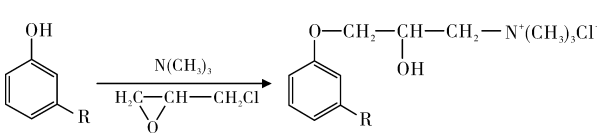 Wang Jun et al. used cardanol, epichlorohydrin and trimethylamine as raw materials to prepare a new cardanol cationic surfactant with a yield of 56%, of which The quaternary ammonium salt content is 80%, and the synthesis route is as follows. The cmc and γcmc of this cationic surfactant are 4. 83 mmol /L and 28. 62 mN /m respectively, showing good surface activity.
