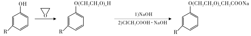 Scorzza et al. used cardanol as raw material to prepare cardanol carboxylate surfactant. The specific synthesis route is as follows. The yield of the product sodium cardanol carboxylate is 41.5%. The carboxylate surfactant has strong hydrophilicity, good surface activity and low critical micelle concentration.