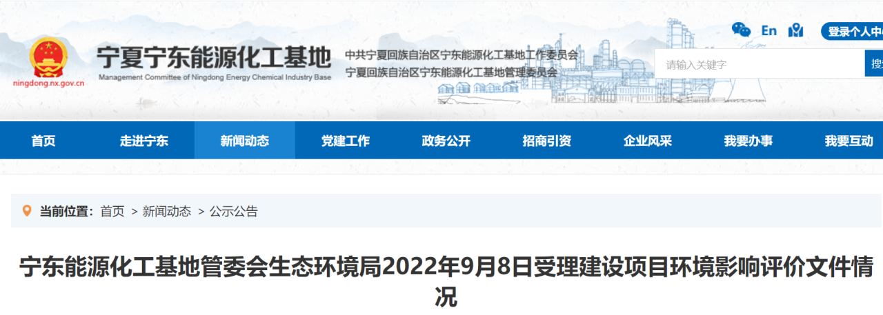 On September 8, 2022, the environmental impact assessment documents for the 100,000 tons/year EVA project of National Energy Group Ningxia Coal Co., Ltd. were accepted.