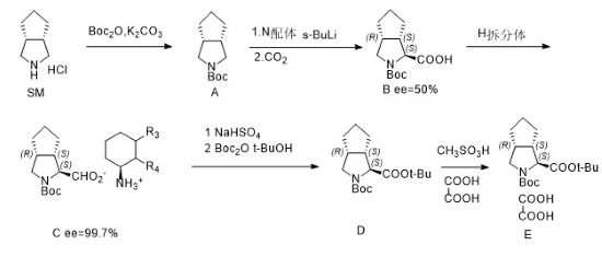 [1] [Chinese invention] Preparation method of CN201510519658.8 (1S,3aR,6aS)-octahydrocyclopenta[C]pyrrole-1-carboxylic acid tert-butyl ester oxalate