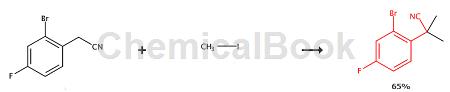 2-(2-bromo-4-fluorophenyl)-2-methylpropionitrile is an intermediate for preparing the compound of the above general formula, and 2-bromo-4-fluorophenyl acetonitrile can be used to prepare 2-(2- Bromo-4-fluorophenyl)-2-methylpropionitrile:
