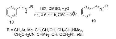 2) Application of IBX in amine oxidative dehydrogenation reaction: Oxidizing amines to imines is a very useful transformation, and there are many related literature reports, but each method has some major shortcomings. The lack of a mild and versatile method for the oxidation of amines in organic synthesis is surprising because structural units such as imines and oximes can be easily prepared through the oxidation of amines, and these structural units are found in many heterocyclic rings. It has important uses in the synthesis of compounds. For this reason, the reaction between IBX and benzylamine was studied, and it was found that IBX can oxidize secondary amines into imines under very mild conditions. The reaction time is short, the yield is high, and it is selective.