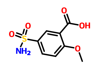 5-Sulfamoyl-2-methoxybenzoic acid, also called 2-methoxy-5-sulfamoylbenzoic acid, is the intermediate of Sulpiride. Sulpiride is an antipsychotic drug. Indications: It has a good effect on the symptoms of apathy, withdrawal, stupor, depression, hallucinations and delusions. It is suitable for the symptoms of isolation, withdrawal and apathy in simple, paranoid, catatonic and chronic schizophrenia. It has a certain effect on depressive symptoms. Other uses include antivomiting.
