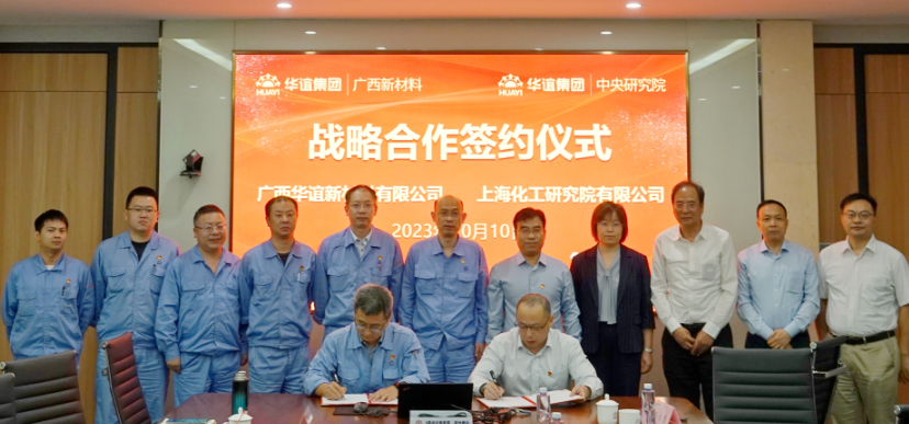 On the morning of October 10, the strategic cooperation signing ceremony between Shanghai Research Institute of Chemical Industry Co., Ltd. and Guangxi Huayi New Materials Co., Ltd. was successfully held at Huayi Qinzhou Chemical New Materials Integrated Base.