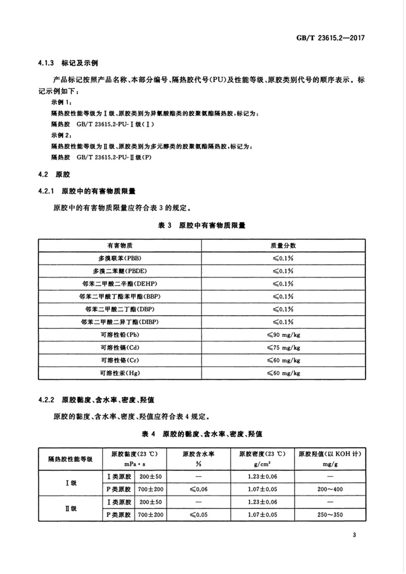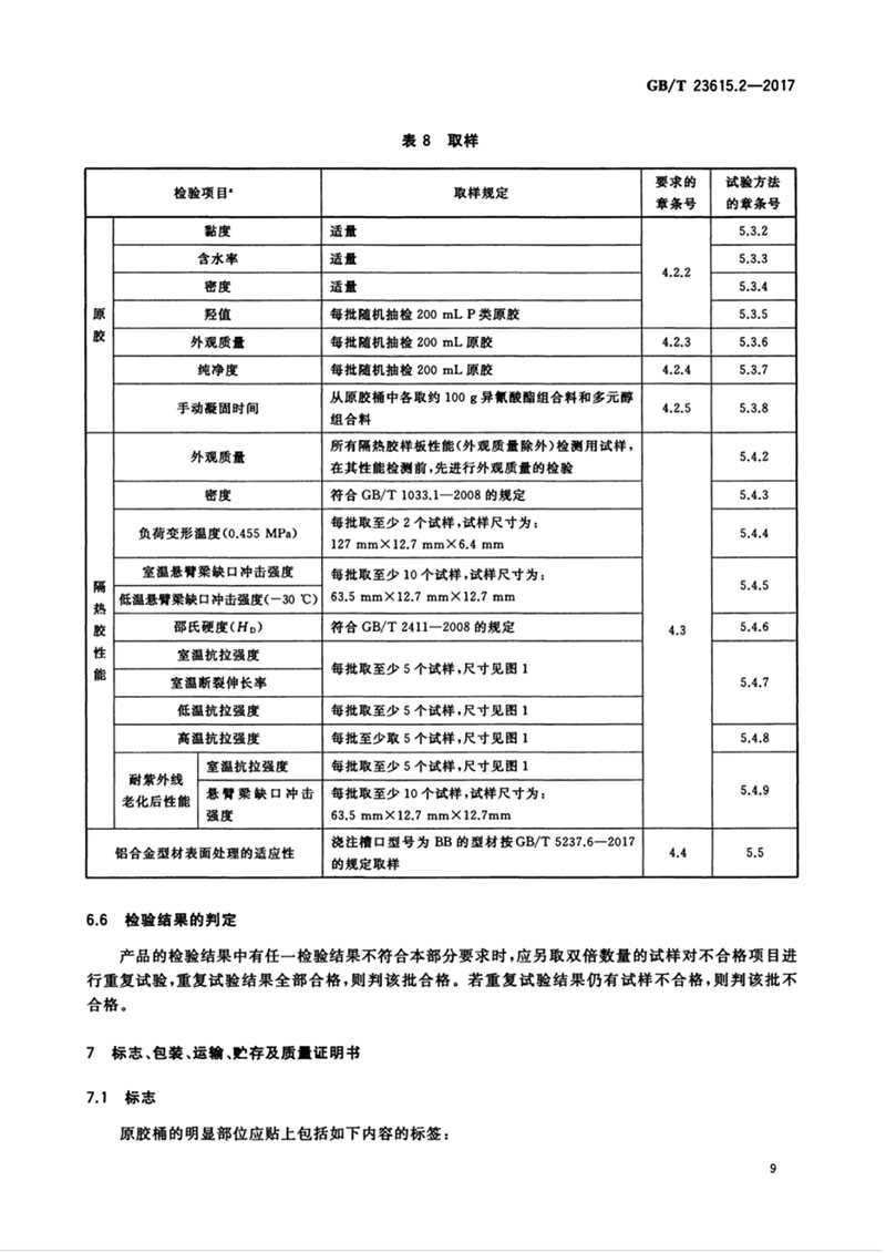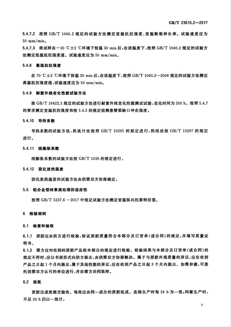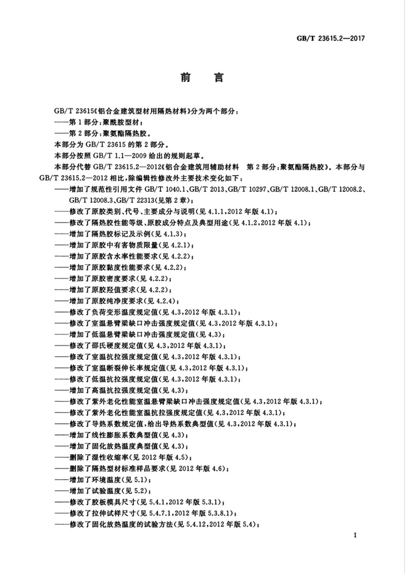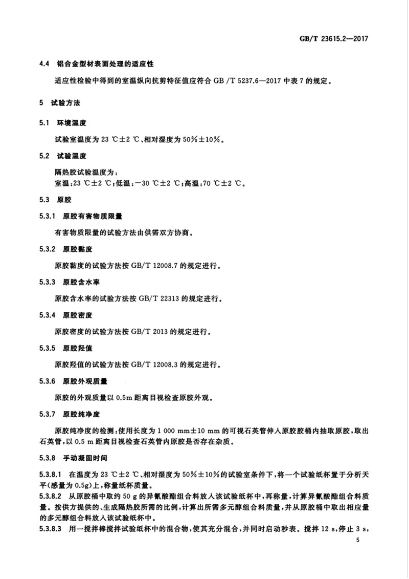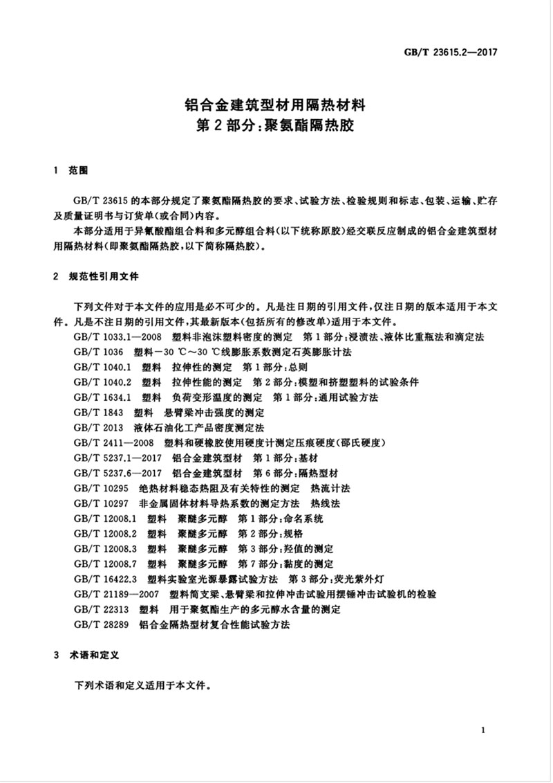 1.5.1 GB/T 23615.2-2017 Thermal insulation materials for aluminum alloy building profiles Part 2: Polyurethane thermal insulation adhesive