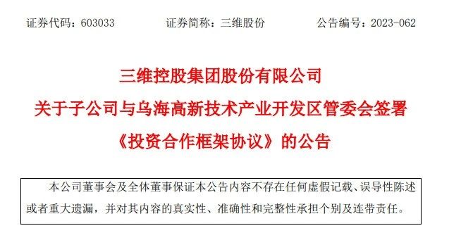 On October 20, Sanwei Holding Group Co., Ltd. (“Sanwei Holdings” for short) announced that its subsidiary Inner Mongolia Sanwei New Materials Co., Ltd. and the Wuhai High-tech Industrial Development Zone Management Committee signed the ” Investment Cooperation Framework Agreement”, it is planned to invest in the Wuhai High-tech Industrial Development Zone to build 700,000 tons/year BDO, 500,000 tons/year degradable plastic PBAT, 240,000 tons/year high-end polyether material PTMEG, 100,000 tons/year NMP and supporting green power projects have a total investment of 14.8 billion yuan.