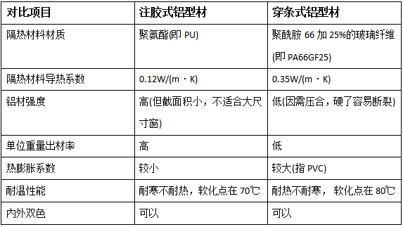 At present, the insulating door and window profiles with a large market share are strip profiles, and In the past, imported polyurethane glue injection equipment and polyurethane glue were more expensive, which made the cost of glue-injection insulated doors and windows higher. As a result, they occupied a smaller share in the domestic market and could only be used in some high-end windows and export profiles. At present, the latest glue injection equipment and polyurethane glue independently developed by relevant domestic companies have reached the level of foreign imported products in terms of performance, but the price is much cheaper. The cast profiles can meet or even exceed the heat-insulating aluminum profile standards officially promulgated by the country. , has a strong competitive advantage in terms of performance and cost. Let’s make a comprehensive comparison between this cast-type profile and the strip-type profile.