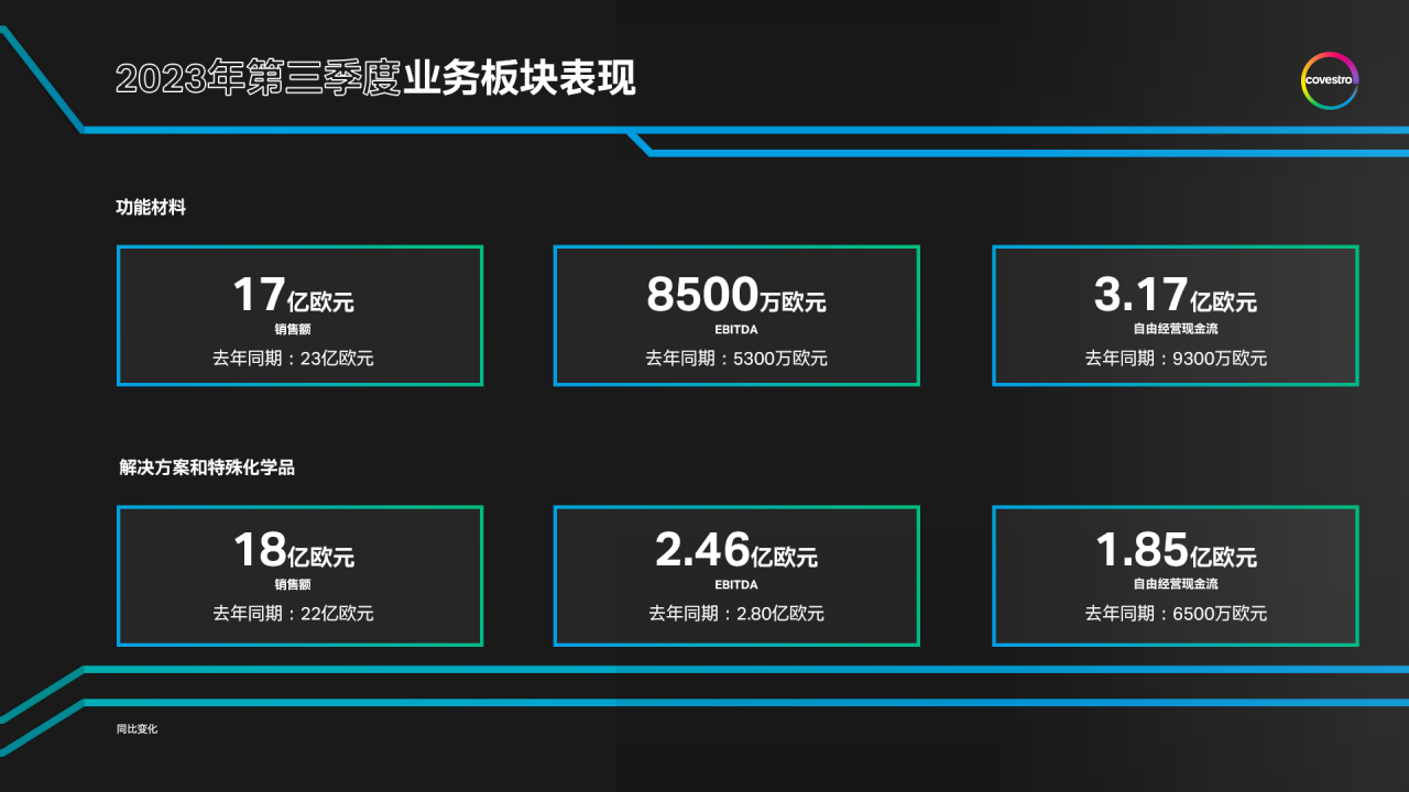 In the first nine months of this year, group sales fell by 21.2% to 11 billion euros (same period last year: 14 billion euros). The main reason is that the average sales price level and sales volume declined due to weak economic activities throughout the year and sluggish market demand. ’s EBITDA in the first nine months of 2023 fell by 42.7% to 948 million euros (same period last year: 17