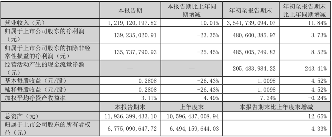Yake Technology achieved revenue of 1.219 billion yuan in Q3, with net profit falling 23.35% year-on-year.