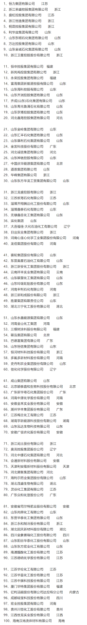 Shandong, Zhejiang and Jiangsu provinces account for nearly 60% of the companies on the list. Among them, Shandong, the largest province in the chemical industry, shows its absolute strength, with 35 companies on the list; Zhejiang has 13 companies on the list, ranking second; and Jiangsu has 10 companies on the list.