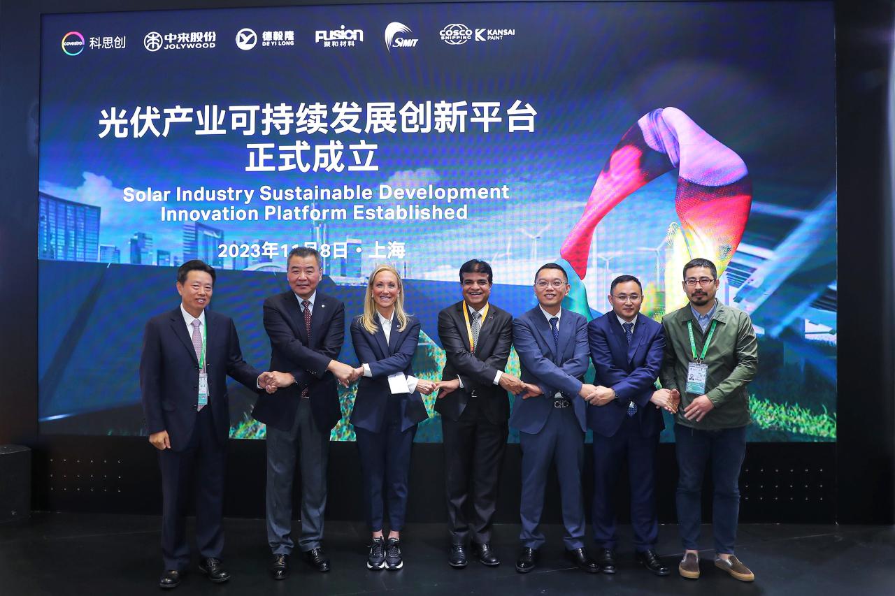 Recently, has cooperated with Suzhou Joly Photovoltaic New Materials Co., Ltd., Zhejiang Deyilong Technology Co., Ltd., Changzhou Juhe New Materials Co., Ltd., Shanghai Institute of Microsystems and Information Technology of the Chinese Academy of Sciences, and COSCO Kansai Coatings and Chemicals Co., Ltd.’s five photovoltaic industry chain leading enterprises and scientific research institutes signed strategic cooperation agreements at the 6th China International Import Expo, officially launching the photovoltaic industry chain sustainable development innovation platform. The cooperation aims to promote collaborative innovation and win-win cooperation between and photovoltaic industry chain partners. With the help of ’s diversified solutions and solid R&D strength, the green energy industry can practice circular economy from the production process and work together to create A sustainable future for the photovoltaic industry.