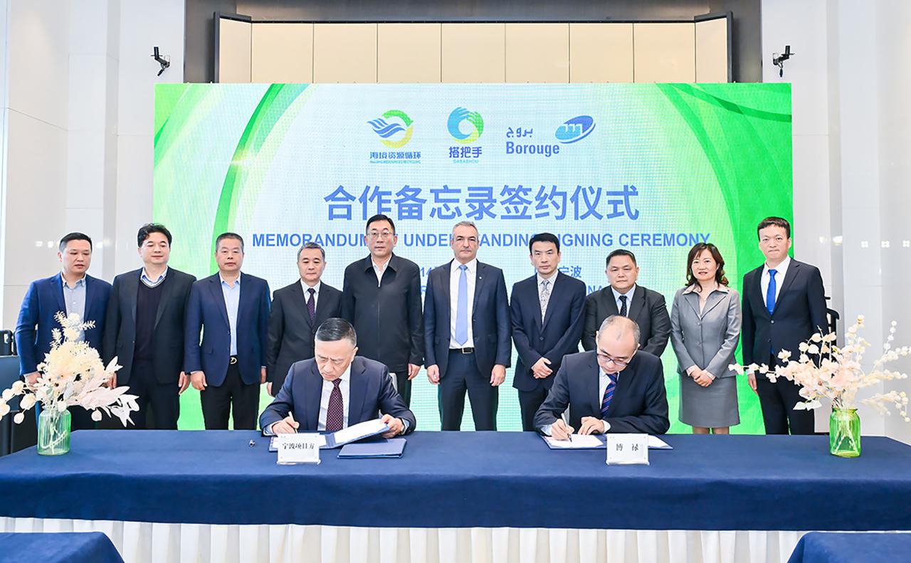 On November 14, 2023, in Ningbo, China, Borouge signed a memorandum of cooperation with Ningbo Handle Ecological Digital Technology Co., Ltd. and Ningbo Haijing Resource Recycling Technology Co., Ltd. to accelerate the research and layout of Ningbo plastic waste reduction management projects.