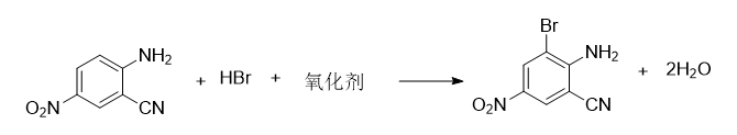 B1. Weigh 100g of 2-cyano-4-nitroaniline prepared in step A5 and put it into 20g of sulfuric acid medium, then dropwise add hydrogen bromide and 50g of hydrogen peroxide to react;