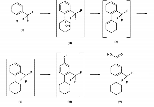 Synthesis of 4-cyclohexyl-3-trifluoromethylbenzoic acid