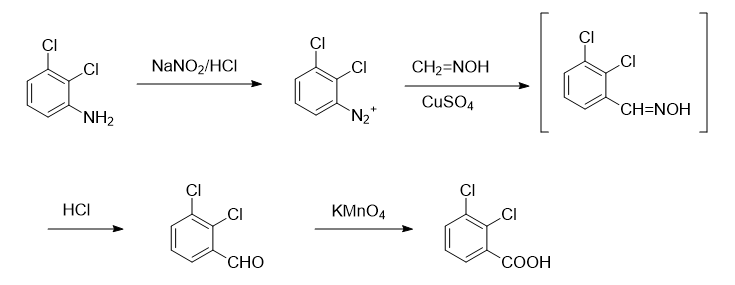 Haloformic acid and its derivatives are an important class of chemical and pharmaceutical intermediates, which are widely used as raw materials for the production of fungicides, pesticides, dyes and drugs. 3,5-Dichlorobenzoic acid is one of them. kind. 2,3-Dichlorobenzoic acid is a synthetic anti-epileptic drug Lamotrigine (3,5-diamino-6-(2,3-dichlorophenyl)-1,2,4-triazine) And other drugs for the treatment of central nervous system disorders such as key intermediates of 2,4-diamino-6-(2,3-dichlorophenyl)pyrimidine.