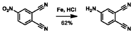 Dissolve 4-nitrophthalonitrile in 50mL methanol and 20mL hydrochloric acid, add iron powder (6g, 107mmol) in batches; after refluxing for 5 hours, the crude product is evaporated under reduced pressure and the solvent is evaporated to obtain the crude product. After separation by column chromatography (eluent: dichloromethane/ethyl acetate, 1/1), a white solid was obtained with a yield of 62%.