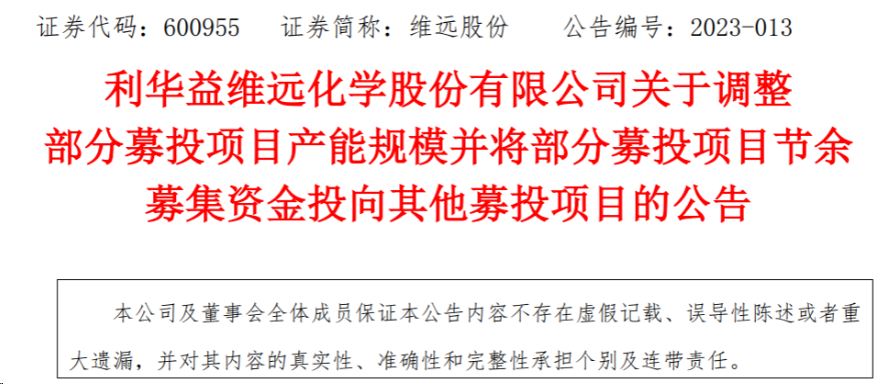 On March 1 this year, Weiyuan Shares issued an “announcement on adjusting the production capacity scale of some fundraising projects and investing the remaining funds raised in some fundraising projects into other fundraising projects.”