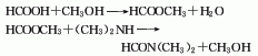 3. Made of carbon monoxide and methanol in Methyl formate is obtained through oxo synthesis under high pressure and temperature of 80-100°C, and then reacts with dimethylamine to form dimethylformamide, and the finished product is obtained after distillation.