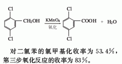 2. The chloromethylation method is obtained by reacting p-dichlorobenzene with paraformaldehyde and then oxidizing it with potassium permanganate. The yield of chloromethylation of p-dichlorobenzene was 53.4%, and the yield of the third step oxidation reaction was 83%