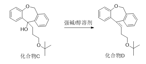 (6) The hydroxyl compound is heated in a strong alkaline alcohol solvent to perform an elimination reaction to obtain an olefin compound (compound D). The reaction formula is as follows,