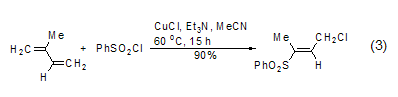 Addition of unsaturated bonds Under light or Cu(I) catalytic conditions, benzene sulfonyl chloride can undergo free radical addition reactions with alkenes and alkynes[6], for example, conjugated diene compounds can undergo an addition reaction with benzenesulfonyl chloride to obtain sulfone (formula 3).