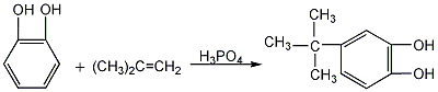 3.By catechol and The reaction of tert-butyl alcohol yields xylene, catechol and phosphoric acid. Stir and heat to dissolve. Continue to raise the temperature until xylene refluxes. Add the xylene solution of tert-butanol dropwise to carry out the reaction. After cooling down and letting it stand, the xylene layer is neutralized with sodium carbonate, washed with water, and then distilled under reduced pressure to obtain the finished product. Or it can be obtained by the reaction between catechol and isobutylene. Add phosphoric acid, xylene and catechol into the reaction kettle, raise the temperature to a certain temperature and pass in the isobutylene. After the reaction is completed, centrifuge the filtrate and wash the filtrate with saturated sodium chloride solution until the pH value is 6. Distillate to recover xylene, distill under reduced pressure and collect.