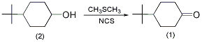 Into a reaction bottle equipped with a stirrer, thermometer, and ventilation tube, add 200 mL of toluene and 8 g of NCS (0.06 mol), add nitrogen, and cool to 0°C while stirring. Add 6 mL (0.1 mol) of dimethyl sulfide, cool to -25°C, and add dropwise a solution of 4-tert-butylcyclohexanol (2) and 40 mL of toluene for about 5 minutes. After the addition was completed, the reaction was stirred at -25°C for 2 hours. Add dropwise a solution of 6g (0.06mol) triethylamine and 10mL toluene, and complete the addition in about 3 minutes. Remove the cold bath, add 400 ml of diethyl ether after 5 minutes, wash with 100 mL of 1% dilute hydrochloric acid and 100 mL of water x 2, dry over anhydrous sodium sulfate, and concentrate under reduced pressure. The residue was distilled under reduced pressure, and the fraction at 120°C/3.325kPa was collected to obtain the product 4-tert-butylcyclohexanone ① (1) 5.54-5.72g, with a yield of 90%-93%. Note: ① This is a method to oxidize primary and secondary alcohols into carbonyl compounds with high yield. The following various carbonyl compounds can be synthesized using this method (Table I=7-5 page 286). [1]