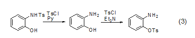 Except O-, TsCl can also act on amine compounds to cause sulfonylation reaction on N-. And in the presence of different bases, TsCl can selectively realize the sulfonylation reaction on O– and N– (Formula 3) [3]. In pyridine solvent, the sulfonylation reaction on N– can occur preferentially; in triethylamine solvent, the sulfonylation reaction on O– can occur preferentially.
