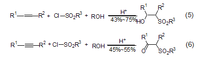 Alkenes or alkynes and TsCl in Under the catalysis of TsOH, β-hydroxysulfonate or β-carbonylsulfonate (formula 5[5], formula 6[6]).