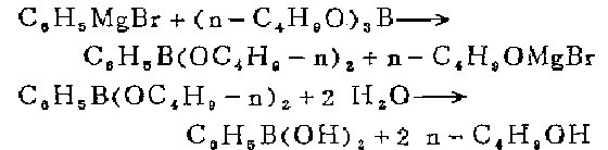 2. The laboratory can prepare it by reacting phenyl Grignard reagent and boric acid triester.