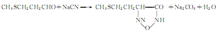 The product methylthiopropionaldehyde reacts with sodium cyanide to form hydantoin.