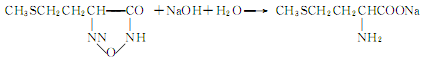 Hydantoin is hydrolyzed in the presence of sodium hydroxide to form sodium methionine.