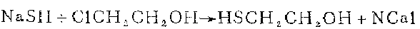 2. Dissolve 23 grams of sodium in 400 ml of distilled alcohol, add hydrogen sulfide to make it saturated (6 hours). 44 grams of ethylene oxide and hydrogen sulfide were simultaneously introduced into the mixture within 1 hour, and the temperature was kept below 30°C during this process. After standing overnight, the reaction mixture was poured into water, 60 ml of glacial phosphonic acid was added to neutralize the solution, and extracted with diethyl ether. The ether extract was dried over anhydrous sodium sulfate, the solvent was evaporated, and the residue was distilled to obtain 24 grams of a fraction with a boiling point of 58°C/12mm, which was identified as β-mercaptoethanol. Also obtained was 29 g of a fraction with a boiling point of 147°C/6mm, which was thiodiglycol.