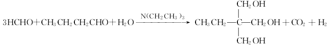 Condensation disproportionation method using triethylamine as catalyst. This method uses n-butyraldehyde and formaldehyde as raw materials and triethylamine as catalyst to perform aldol condensation reaction. 2,2-dimethylolbutyraldehyde is generated, and then the Cannizzaro reaction occurs with excess formaldehyde and alkali to generate trimethylolpropane. The amine salt is decomposed to recover the catalyst triethylamine, and then purified in a distillation tower to obtain Trimethylolpropane. The reaction formula is as follows: