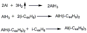 1. Aluminum powder, hydrogen and isobutylene are directly synthesized in the next step under the conditions of 110~120℃ and 5~6MPa to prepare this product. It is more advantageous if pre-prepared triisobutylaluminum is added during the reaction. The reaction product is left to settle, centrifuged, filtered, and prepared to become the finished product.