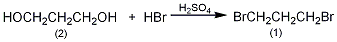 In a reaction flask equipped with a stirrer, reflux condenser, and dropping funnel, add 500g (340mL) of 48% hydrobromic acid, cool in an ice-water bath, and slowly add 80mL of concentrated sulfuric acid while stirring. Add 91g of newly distilled 1,3-propanediol (2) dropwise (bp210~215℃), and then add 130mL of concentrated sulfuric acid while stirring. After adding, heat to reflux for 3.5 hours. Change to a distillation unit for distillation. Until there is almost no oil dripping out. The distillate was distilled, and the fraction between 162 and 165°C was collected to obtain 220g of 1,3-dibromopropane with a yield of 91%. [1]