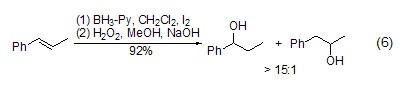 For olefinic bonds Hydrogenation reductionIn the presence of activating reagents (such as iodine), borane-pyridine can also hydrogenate and reduce carbon-carbon double bonds, and the product has a certain chemical selectivity (Formula 6)[ 10].