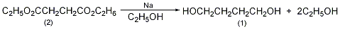 With a stirrer , two reflux condensers, and a 3L reaction bottle with a dropping funnel, add 60g (2.6mol) of fresh metallic sodium, and quickly add 35g (0.2mol) of diethyl succinate (2) and 700mL of absolute ethanol. The reaction proceeds vigorously and can be cooled in an ice-water bath if necessary. After the reaction is stable, heat the reaction (bath temperature can reach 130°C) to complete the reaction of metallic sodium (about 0.5 to 1 hour). Cool in an ice-water bath and filter out the precipitated sodium chloride. Add 300g anhydrous potassium carbonate to the filtrate to remove water and acid. Filter, and the filter cake is extracted twice with hot ethanol. Combine the filtrate and extract, evaporate the ethanol, and solid salt will precipitate. Add dry acetone, filter, and evaporate the acetone. The residue was distilled under reduced pressure, and the fraction at 133-135°C/2.4kPa was collected to obtain 13g of 1,4-butanediol (1), with a yield of 72%. [1]