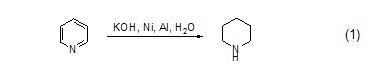 Preparation of hexahydropyridine from pyridine In an aqueous solution of potassium hydroxide, pyridine reacts with nickel-aluminum alloy to form hexahydropyridine (formula 1)[1].