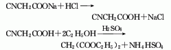 In a reaction bottle equipped with a stirrer, thermometer, and reflux condenser, add 100g (1.06mol) of chloroacetic acid (1) and 250mL of water. Add 90g (1.07mol) of sodium bicarbonate in batches under warm conditions and stir to dissolve at 50-60°C. After the reaction is completed, the pH of the reaction solution is approximately 7. Add 80g (1.23mol) of potassium cyanide in batches, and react at 105 to 110°C for 1 hour after completion. Concentrate under reduced pressure until the internal temperature rises to 130-135°C. Solidifies when cooled. Add 50 mL of absolute ethanol, and then add a mixture of 160 mL of absolute ethanol and 160 mL of concentrated sulfuric acid in about 10 minutes. The reaction is exothermic. The reaction was refluxed for 1 h with stirring. After cooling, add 200 mL of water, filter with suction, wash the insoluble matter with diethyl ether, separate the organic layer, and extract the aqueous layer twice with diethyl ether. Combine the organic layers and wash with sodium carbonate solution until no carbon dioxide gas is generated and the washing liquid becomes alkaline. Dry over anhydrous sodium sulfate. Evaporate the diethyl ether, then distill under reduced pressure, collect the fraction at 92-94°C/2.13kpa, and obtain 105g of diethyl malonate (1), with a yield of 62%. [2]